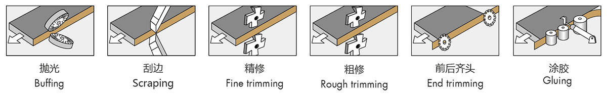 本機適用于實木板、纖維板、刨花板等板材工件的直線封邊,封邊材料可用實木條、PVC、三聚氰胺、薄木皮等。