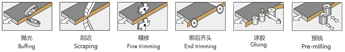 本機適用于實木板、纖維板、刨花板等板材工件的直線封邊,封邊材料可用實木條、PVC、三聚氰胺、薄木皮等。