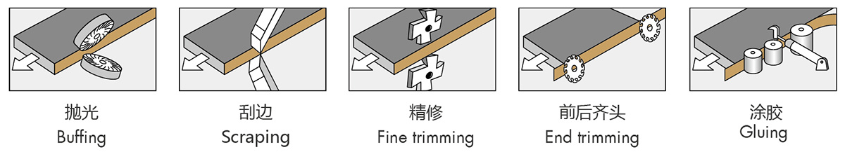 本機(jī)適用于實(shí)木板、纖維板、刨花板等板材工件的直線封邊,封邊材料可用實(shí)木條、PVC、三聚氰胺、薄木皮等。